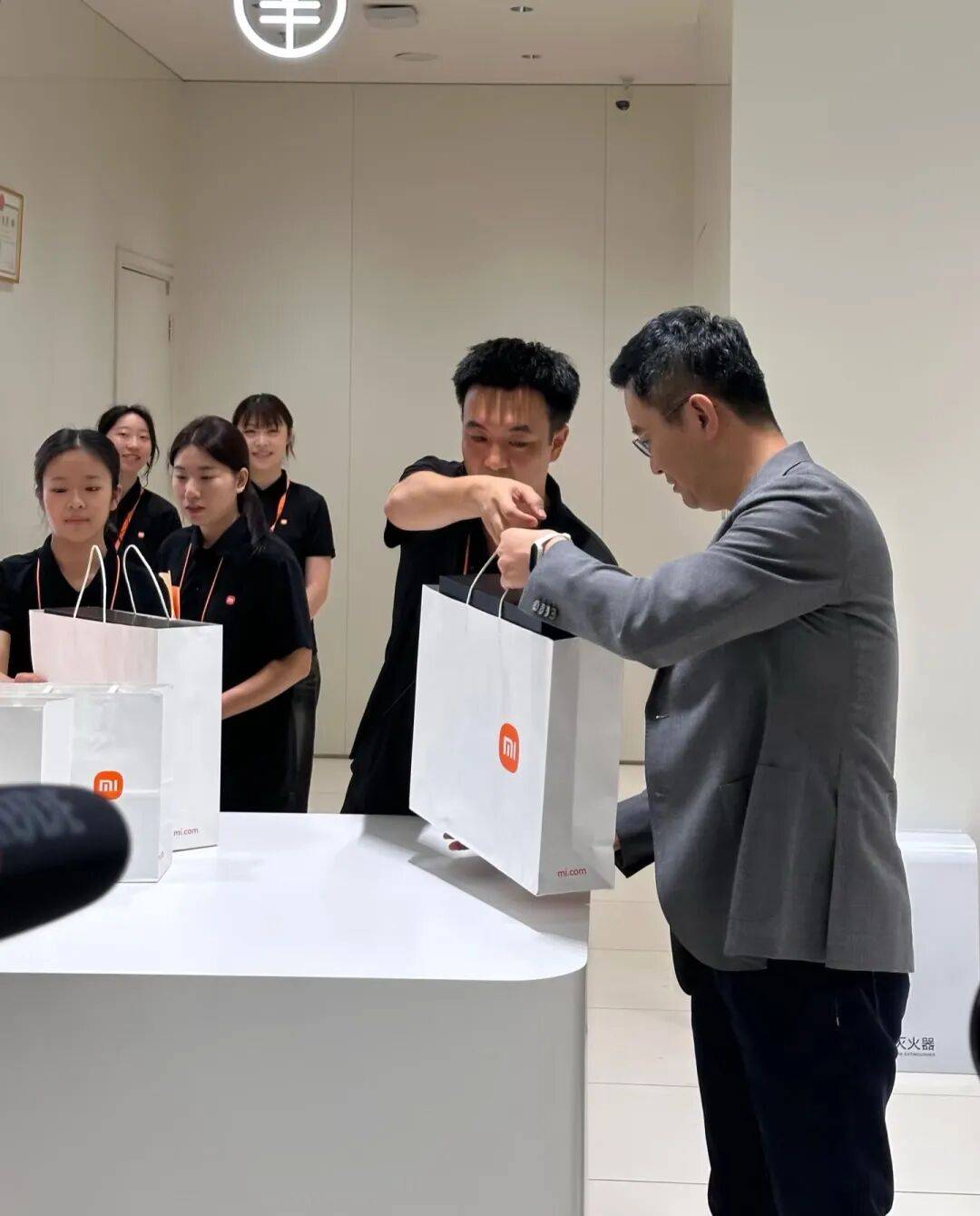 销售现场,小米集团合伙人、总裁卢伟冰现身北京华熙LIVE五棵松店,与店员共同完成开门倒计时仪式,并亲自为首批购机用户递上新机。这一举动引发网友热议,不少人通过社交平台分享现场照片与视频。
