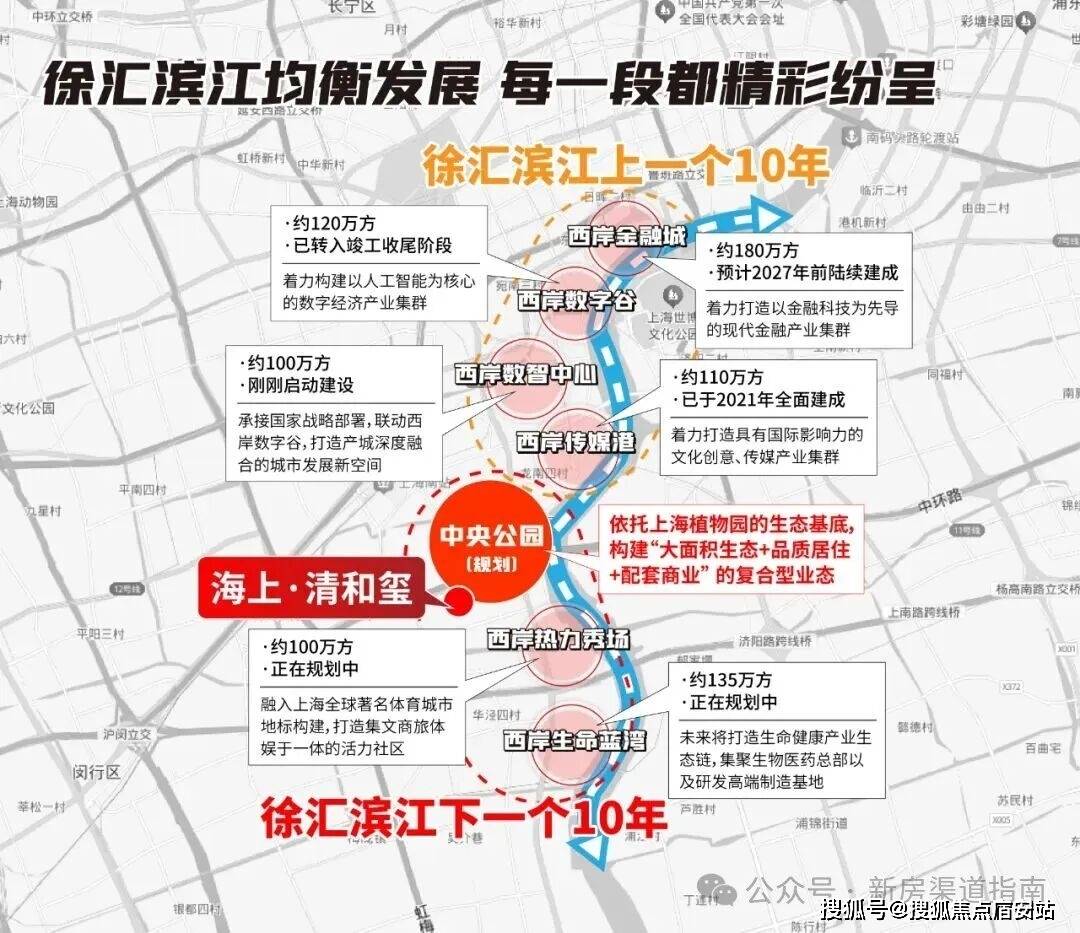 ①、第七组团(中央公园组团):徐汇滨江下一个“宜居发展极”徐汇滨江的开发逻辑向来清晰:以“生态优先、产居融合”为核心,让居住与自然、休闲深度绑定。如今北段已开发饱和,承载下一轮发展势能的,正是海上·清和玺所在的第七组团(中央公园组团)